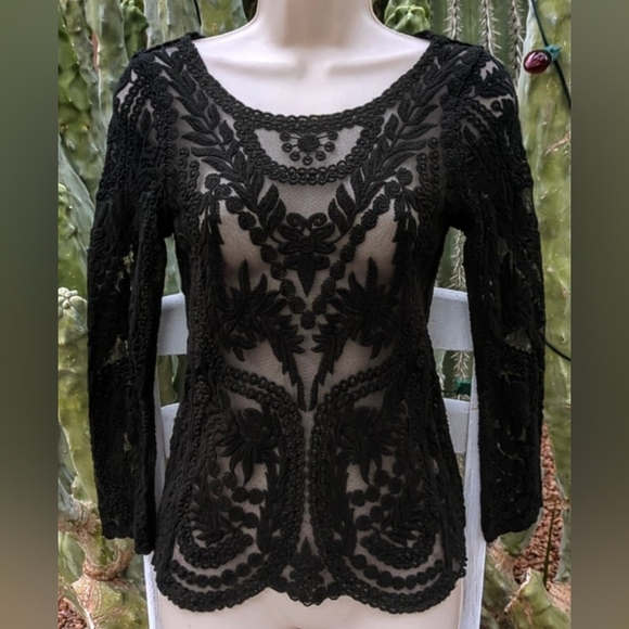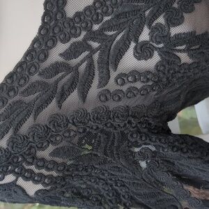 Vintage Y2K Express black nylon mesh top with floral lace. Size XS. 100% nylon - has no stretch. In great pre-worn condition. No rips or stains. Comes from a smoke free home.