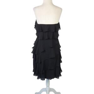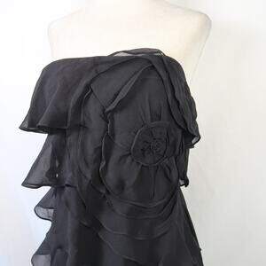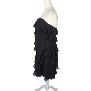 Vintage Y2K Express Black Silk Tiered Ruffle Strapless Party Dress 10