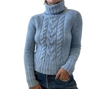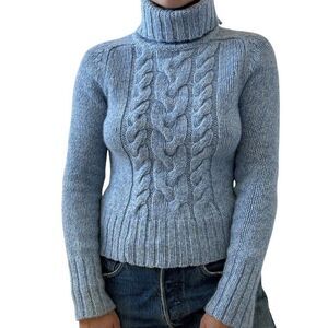 Vintage Y2K Express Blue Angora Ribbed Fluffy Fuzzy Soft Turtleneck Sweater Sz M