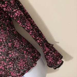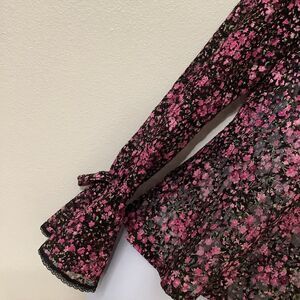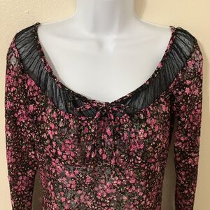 2000s Dark Fairycore Whimsygoth Grunge Witchy Witch Aesthetic Romantic Goth Black Pink Floral Flower Slinky Babydoll Milkmaid Peasant Top