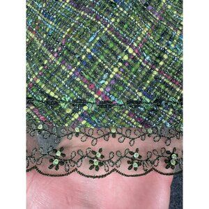 Green/Mulit color tweed knee length skirt with lace beaded hem.