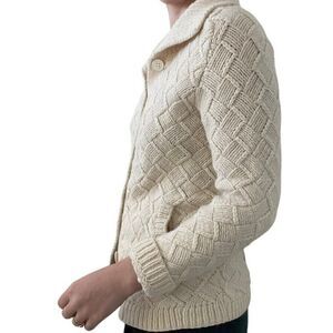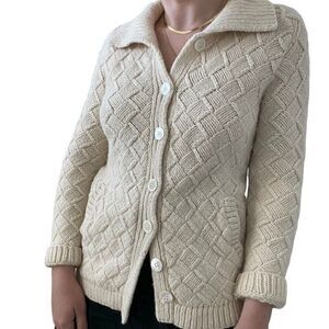 Vintage Y2K Express Womens White Chunky Wool Soft Fisherman Cardigan Sz M