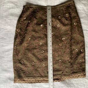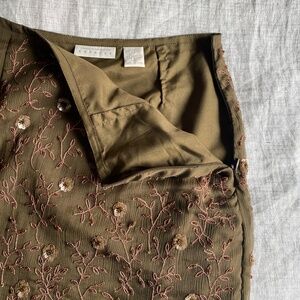 Gorgeous vintage Y2K Express olive green beaded and embroidered silk mini skirt