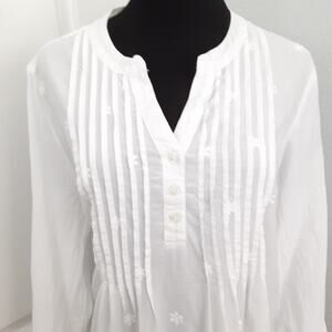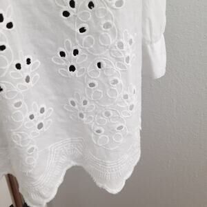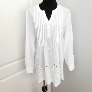 Vintage Y2K Eyelet Lace Tunic Top White Broderie Anglaise Roll Tab Resort