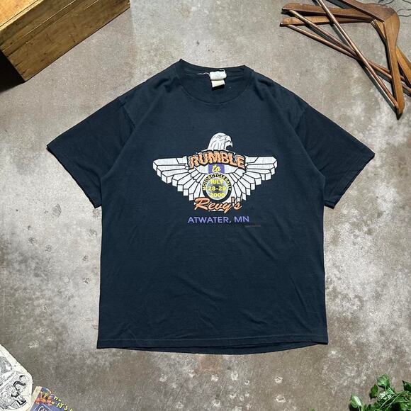 Vintage Y2K Faded Black Wings Tribal Biker Tee Mens XL Faded Black Eagle Shirt