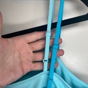 Vintage Y2K Faded Glory Double Layer built in bra cami tank turquoise blue XL