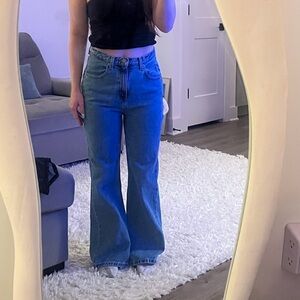 lighter mid wash high waisted jeans with a flare leg from 2004
