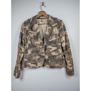 Vintage Y2K Faded Glory Jacket Size Large Blazer Denim Camo Grunge Military Army