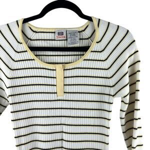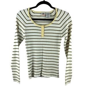 Keywords: Y2K striped henley, vintage 2000s Faded Glory, soft casual long sleeve, retro fitted top, classic throwback fashion, relaxed streetwear aesthetic, nostalgic early 2000s fashion, comfy fall layering piece, classic Y2K casualwear, timeless vintage basic.
