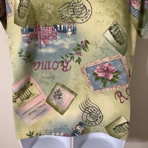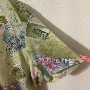 2000s Fairy Fairycore Artsy Wearable Art to Wear Aesthetic Green Multicolor Architecture Stamp Roman Italy Theme Short Sleeve Tee Shirt
