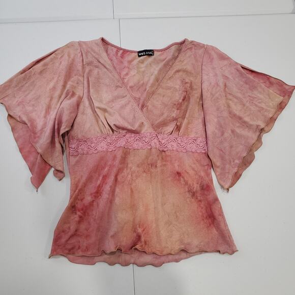Vintage Y2K Fairy Grunge Wet Seal Shirt Womens Medium Pink Tie Dye Flutter Boho