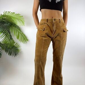 Vintage Y2K Fairy Grunge Mid Waisted Granola Girl Corduroy Cargo Jeans / 32