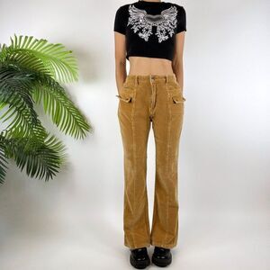 Vintage Y2K Fairy Grunge Mid Waisted Granola Girl Bootcut Corduroy Cargo Jeans
