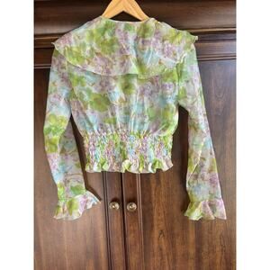 Vintage Y2K Fairy Top S Floral Pastel Crop Blouse Sheer Long Sleeve Boho Cottage