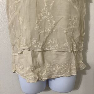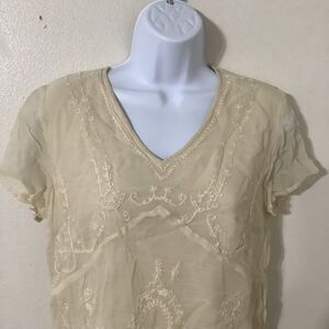 April Cornell VTG 2000s Summertime Summer Beachy Cottage Bohemian Aesthetic 100% Rayon Cream Sheer Overlay Short Sleeve Top