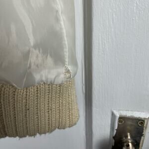 Vintage Y2K Faux Fur Creamy White Teddy 70s Jacket w/ Knit Tan cuffs & hem