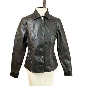 Vintage Y2K Faux Leather Dark Brown Structured Moto Jacket S Pockets Biker Cool