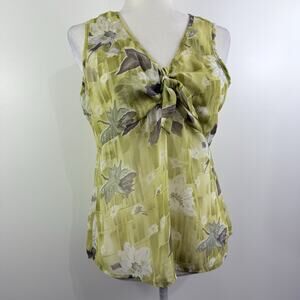 Vintage Y2K First Time Green Floral Sleeveless Blouse Medium Sheer Tie Bodice