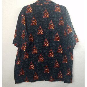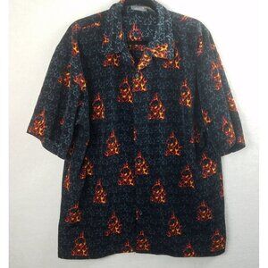 Vintage Y2K Flames Skull Shirt Men’s XL 90s Button Up Emo Black Breakdown