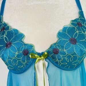 Vintage Y2K Floral Coquette Bow Mesh Cami Chemise Lingerie Phoebe S