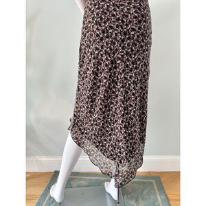 Vintage Y2K Floral Halter Hi Low Dress Asymmetrical Hem Midi Slip Dress Black Pink Grunge Boho Fairycore size 3 by La Belle