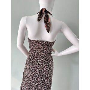 Vintage Y2K Floral Halter Dress Asymmetrical Hem Midi Dress Black Pink size 3