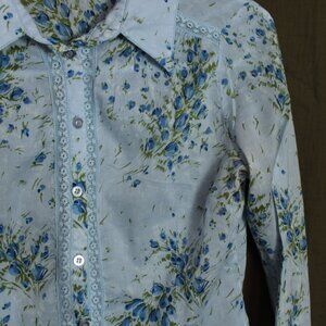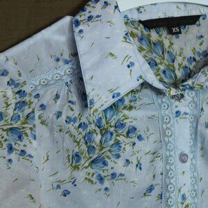Vintage Y2K Floral Light Blue Sheer Button Down XS Guess Collection