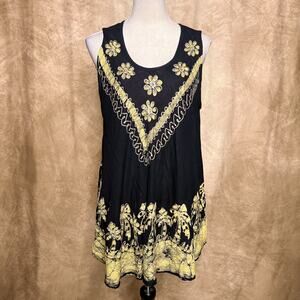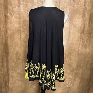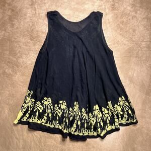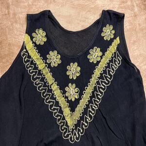 Vintage Y2K Black & Green Floral Palm Tree Tie Dye Embroidered Sleeveless Mini Dress