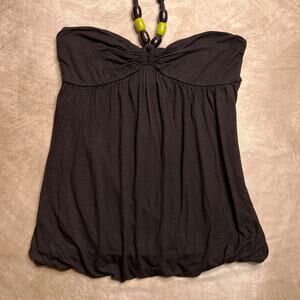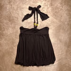Vintage Y2K Forever 21 Twenty One Beaded Halter Top Bubble Hem Empire Waist Boho