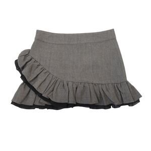 Vintage Y2K Forever 21 Twist Charcoal Grey Wool Blend Frilly Low Rise Mini Skirt