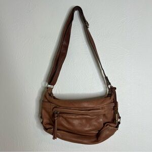 Vintage Y2K Fossil Brown Pebbled Leather Crossbody Shoulder Bag Adjustable Strap