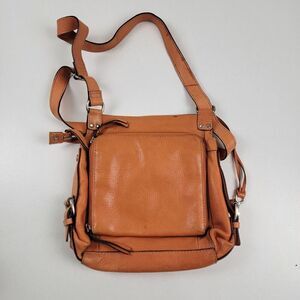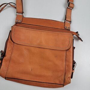 Vintage Y2K Fossil Crossbody Shoulder Bag Orange Leather Boho Hipster