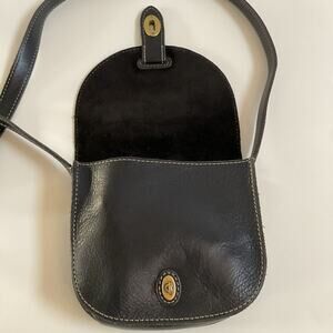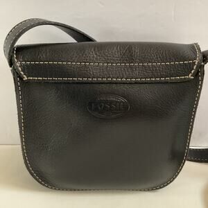 Vintage Y2K Fossil Mini Austin Black Leather Turnlock Saddle Bag Crossbody Purse