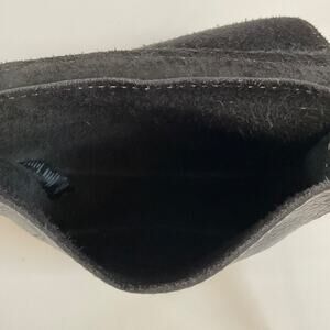 Turn key closure. No inside pockets. Natural, raw suede lining.