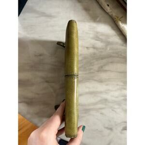 Excellent condition, the most minor or discoloration on one corner (see photo, it is not noticeable). Rich olive green, zip closure. Zip pocket on back and in interior. Multiple card slots.