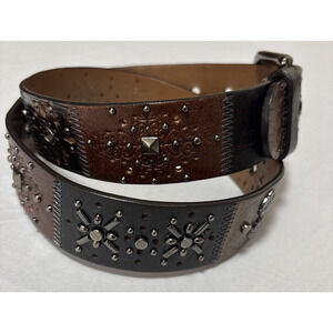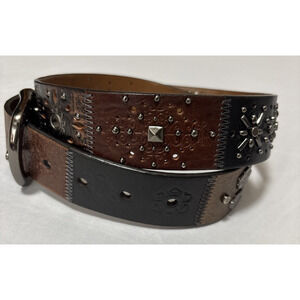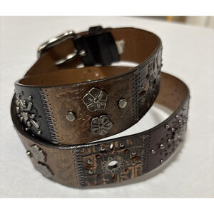 Vintage Y2K Fossil Small Leather Belt Patchwork Floral Studded Cowhide Tooled