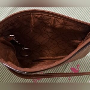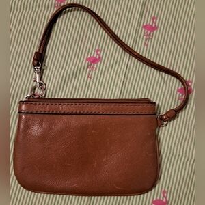 Vintage Y2K Fossil Tan Leather Boho Neutral Compact Wristlet Clutch w/ Keychain