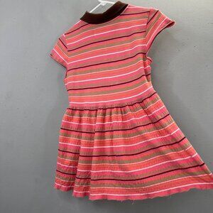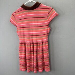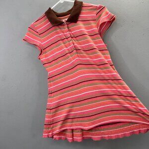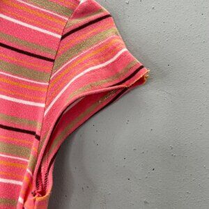 Vintage Y2K Free People Babydoll Polo Shirt Top L Pink Brown Stripe Raw Hem Boho