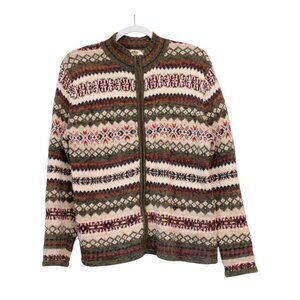 Vintage Y2K Full Zip Sweater Size Medium Fair Isle Ramie Cotton Knit Classic