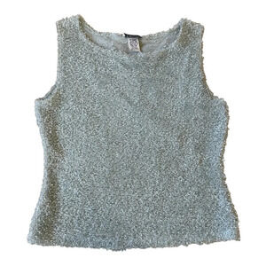 Vintage Y2K Fuzzy Tank Top Size L Baby Blue Eyelash Textured Sleeveless Cami pullover style, slightly fitted silhouette. Measurements are approximate and taken while garment is flat. Underarm to underarm: 18” Length shoulder to hem: 20” Waist: 16” Material: stretchy polyester blend Condition: gently used Tags: fuzzy, textured, knit, shaggy, pastel, #fuzzyfashion, Y2K, 90s, made in USA, vintage