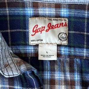 Vintage Y2K GAP 100% Cotton Flannel Button Down Shirt Plaid Mens Size Large. 100% cotton. Double front pockets. Medium weight. Very durable, thick and warm. Excellent condition. Relaxed, loose fit. Smoke free home. NEXT DAY SHIPPING.