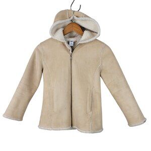 Vintage Y2K GAP Girls Coat Sherpa Zip Hooded Size Medium 7-8 Shearling Winter