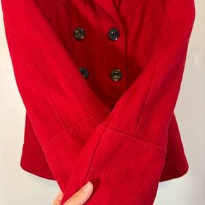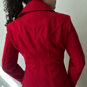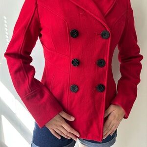 Vintage Y2K GUESS Preppy Pea Coat Women's Cherry Red Wool Jacket - Size Small