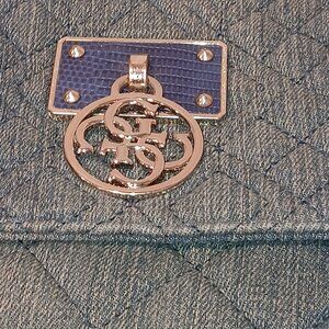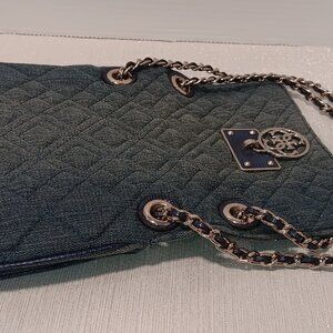 Vintage Y2K GUESS quilted Denim Shoulder Bag double chain handle flap front