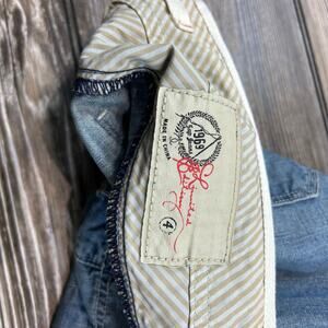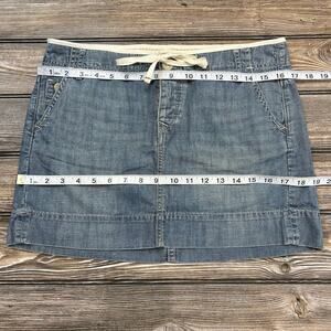 Low rise to sit on the hips, draw string for some adjustment but this string doesn't wrap around inside the skirt. It only snugs the very front. Meant to sit down on your hips.