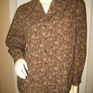 Vintage Y2K Gap Long Sleeve Button Up Shirt Top S Brown Floral Grannycore Preppy