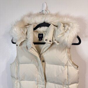 Vintage Y2K Gap Vest Womens M Puffer Down Quilted Faux Fur Hood Zip Snap