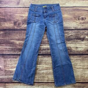 Vintage Y2K Gasoline Jeans Womens 11 Flared Light Wash Button Pockets
