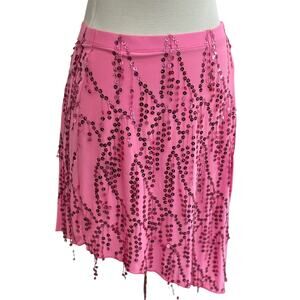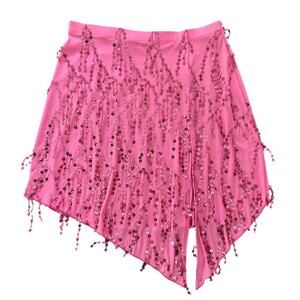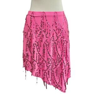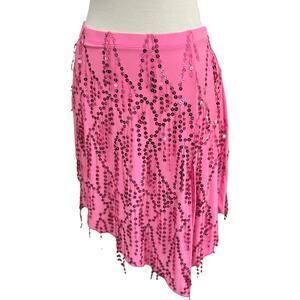 Vintage Y2K Geneva Dance Skirt Woman's Medium Sequin asymmetric Pink Rave Club