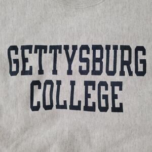 Y2K Champion Gettysburg College sweatshirt in gray reverse-weave, small size, baggy collegiate style. Shop now!